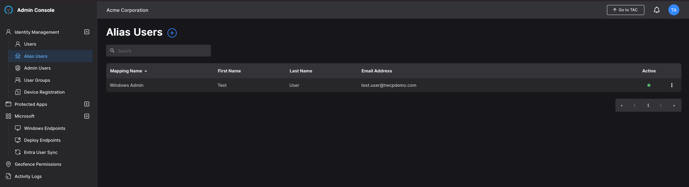 NOTE: The Primary user must already have a Windows endpoint user registered with the Windows endpoint for alias access to be granted.