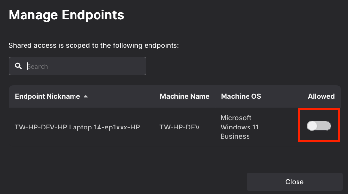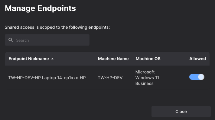 The selected Windows endpoint(s) will appear in the list of Allowed Endpoints.