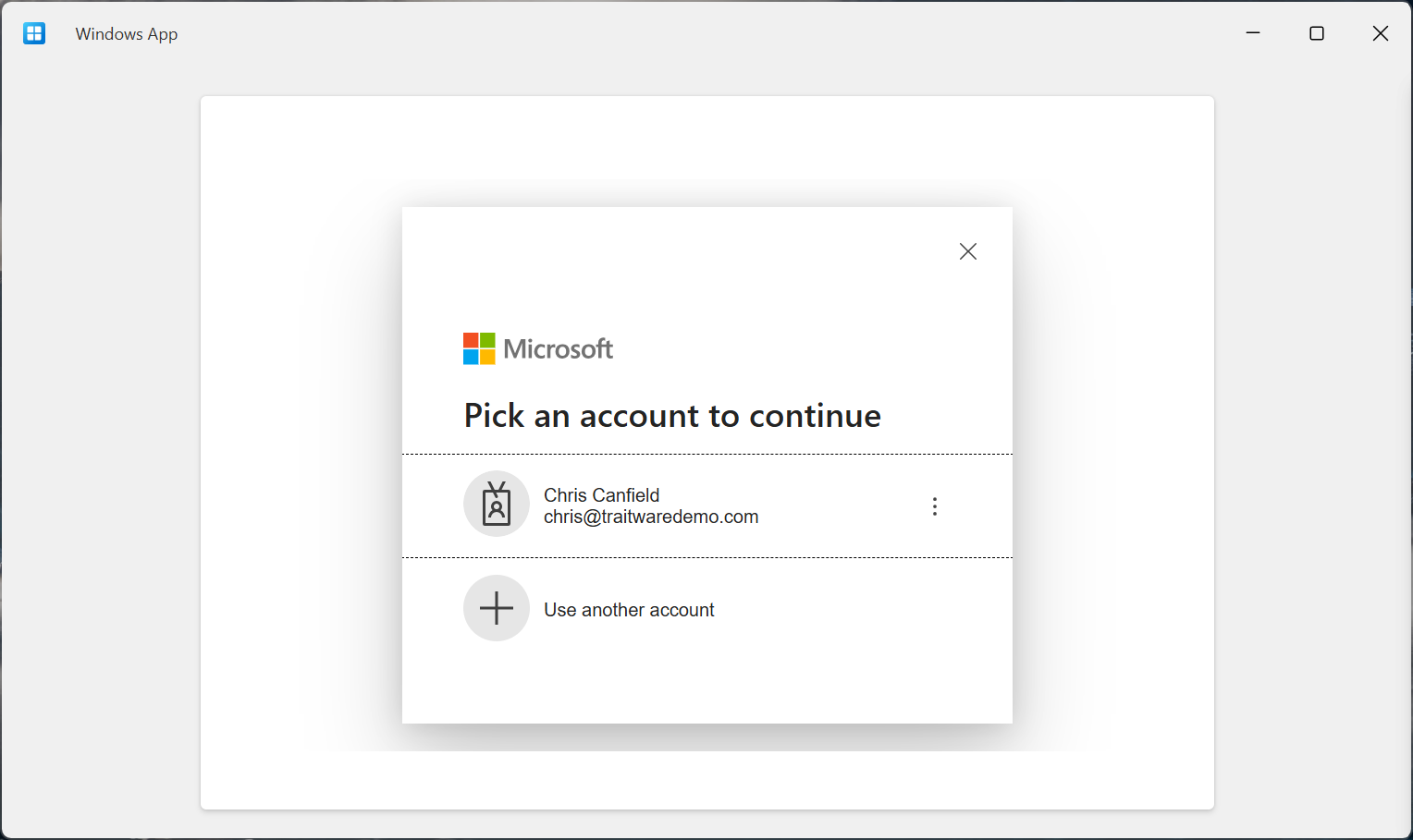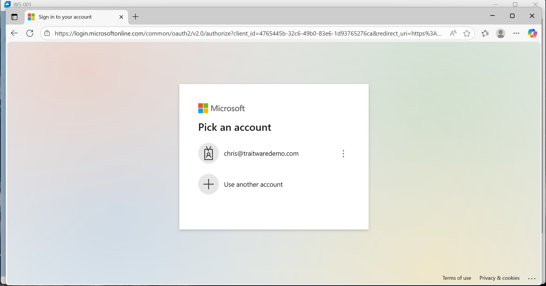 - User permission turned on in the TraitWare console for access to the Microsoft Application